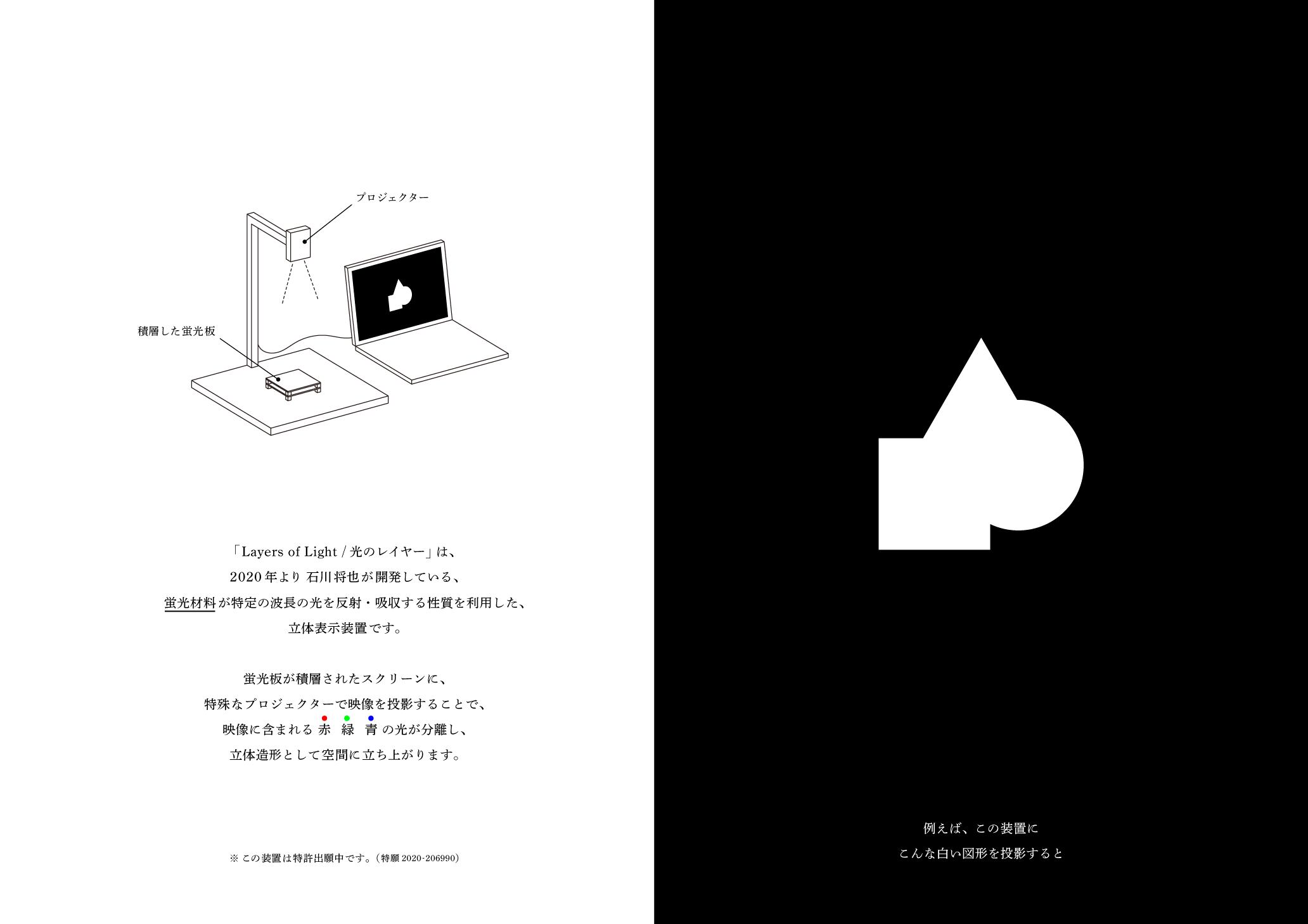 Layers of Light は、石川将也が開発している光の波長の原理を用いた立体ディスプレイと、それを用いたアニメーション表現作品のアートプロジェクトです。